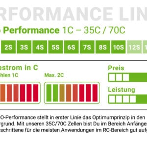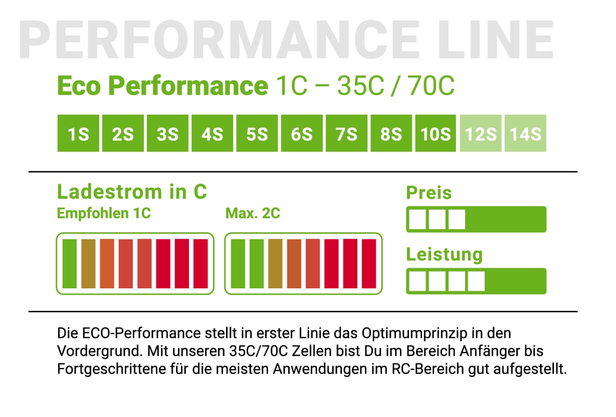 Die ECO-Performance stellt in erster Linie das Preis-/ Leistungsverhältnis in den Vordergrund. Mit unseren 35C/70C Zellen bist Du im Bereich Anfänger bis Fortgeschrittene für die meisten Anwendungen im RC-Bereich gut aufgestellt. Swaytronic bietet Dir einen LiPo welcher unter optimaler Ausnutzung von Gewicht, Grösse und Leistung die bestmögliche Energiemenge liefert.