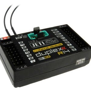 Der DUPLEX R14 Empfänger bietet die Möglichkeit des Anschlusses eines DUPLEX 2.4GHz Satelliten-Empfängers. Die Servo-Ausgänge können beliebigen Kanälen zugeordnet werden.