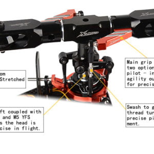 1.HPS (High Precision Head System), New head with 2-piece blade grip preserves grips in the event of a crash.