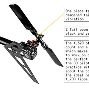 4.Swash-plate servos support medium-sizes servo,the XLPOWER520 lightweight design is 1800g,without battery this effectively increase the power and improves flight time,Tail servo support medium-sizes servos and standard servo,motor support 4020 or 4025.1100KV for 6s,550kv for 12s.Li-Po support 6S 3000Mah-5200mAh.Battery slot H 55mm*W 48mm*L150mm.ESC support 80A-120A.